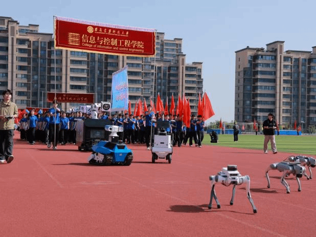 师生自主研制的园区清扫巡检机器人、大空间场所智能消防灭火机器人、建筑施工钢筋捆扎机器人等组成的智能装备方队依次驶过,充分展现了专业特色,彰显了学科内涵。运动员方阵入场后,三级片